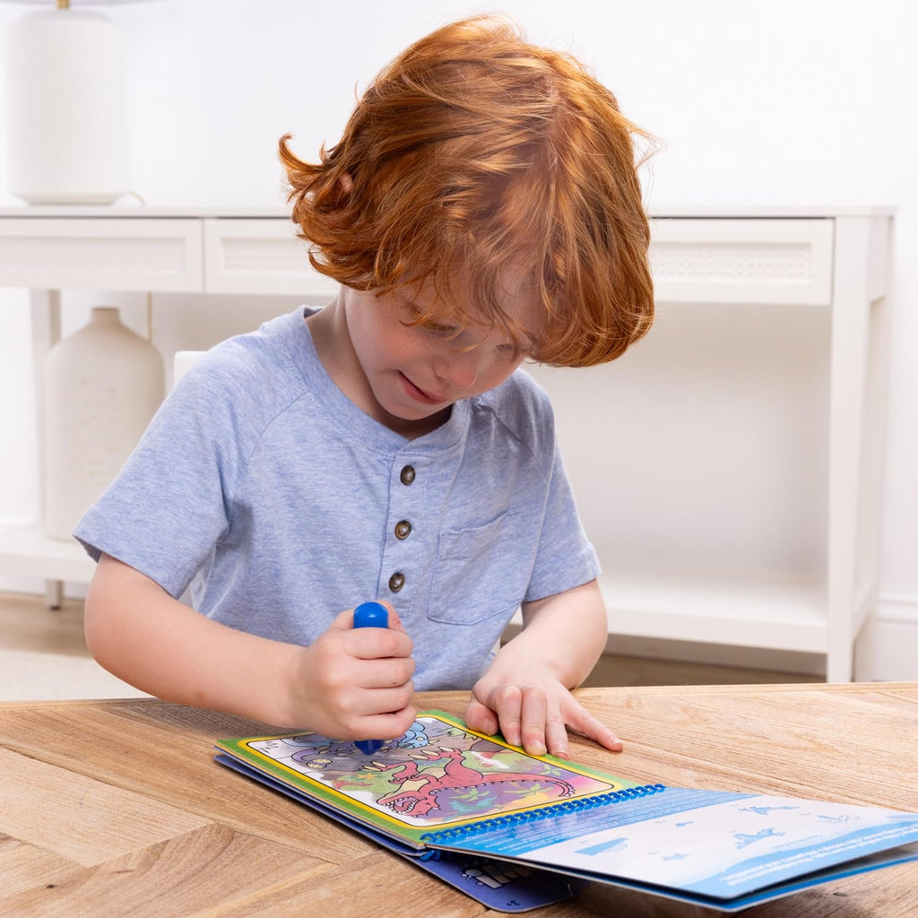 No-mess painting for kids! This exciting paint-with-water coloring book includes four reusable pages and a refillable water pen. Simply fill the pen with water and color in each scene details and vibrant color appear with every stroke! Then let the pages dry to erase the pictures and fill them out again and again. This makeover-themed book includes four scenes of young ladies with beautiful makeup and accessories to color, plus search-and-find activities for each scene. The chunky-sized water pen is easy for kids to hold and stores neatly right in the front cover, so Water Wow! makes an ideal travel activity book and travel toy.