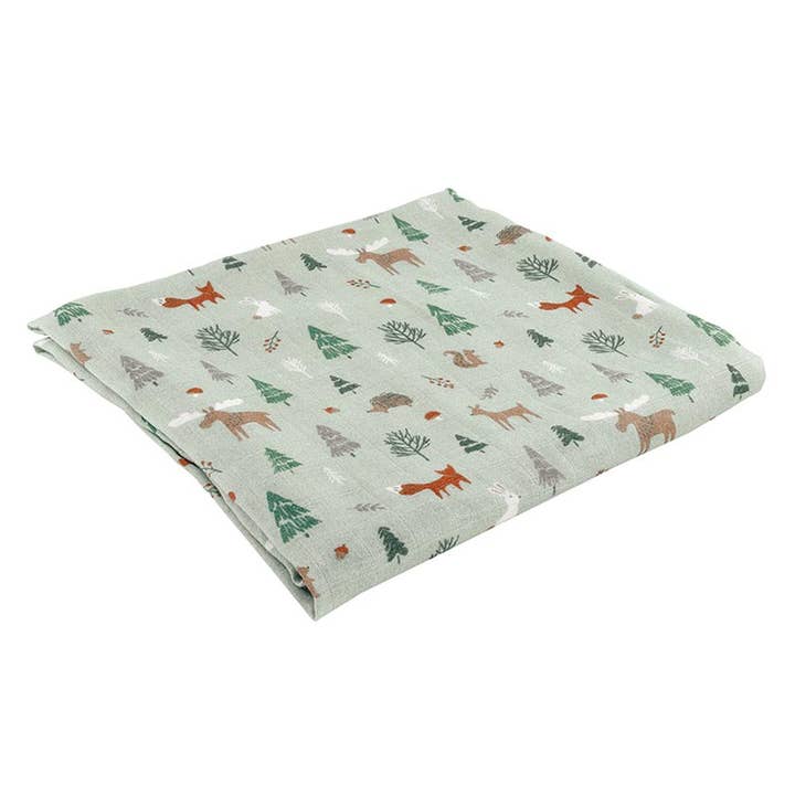 This cozy swaddle and rattle set is a delightful gift for any occasion. The soft bamboo cotton swaddle features a charming woodland print, while the matching moose-shaped rattle adds a playful touch. Featuring gift-ready packaging, it's a lovely choice for baby showers, newborn arrivals, or just to share a little joy!