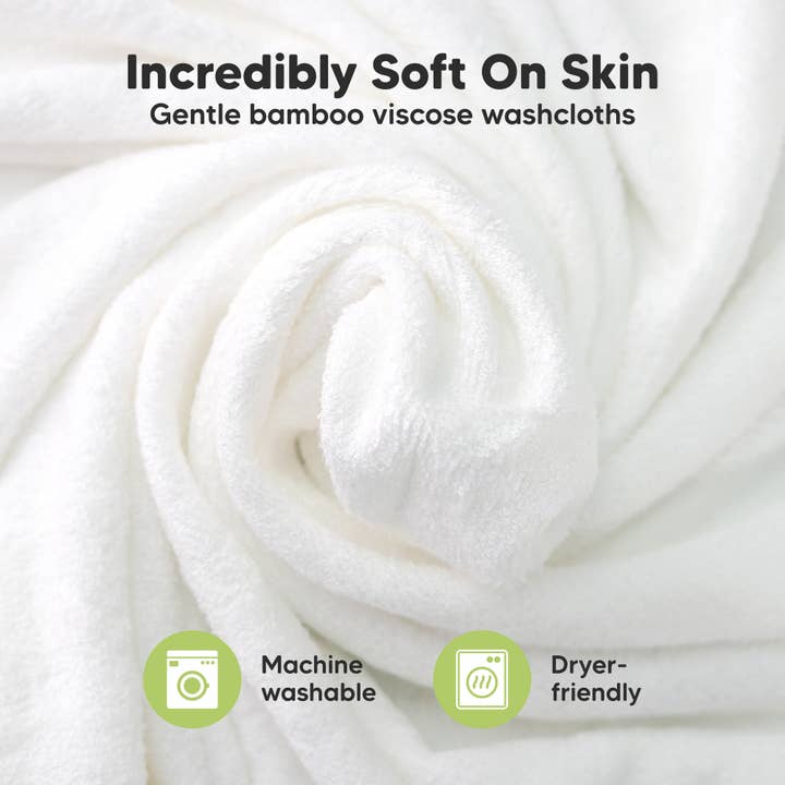 Our baby washcloths are made with premium quality (500GSM) viscose derived from bamboo (OCS Certified by CU 1042833), which makes them luxuriously soft, plushy, and highly absorbent. Perfect for daily baby bath and as a face towel. Our infant wash cloths are exquisitely made to be plushier and thicker so that it lathers easily, which helps in deep cleansing of the face and skin yet are ultra soft to the touch, making it perfect for newborn baths. Sized at 10" by 10" covering the palm of an adult, making them great for multiple purpose. Some versatile uses includes using them as baby bath cloths, burp cloths, baby rags, face towels, makeup removal washcloths, on the go baby wash cloths, and so much more. Suitable for all newborn, kids, and adult. Sold in pack of 6 and comes in a sustainable kraft gift box.