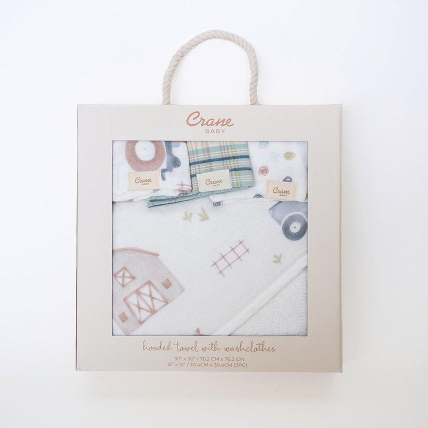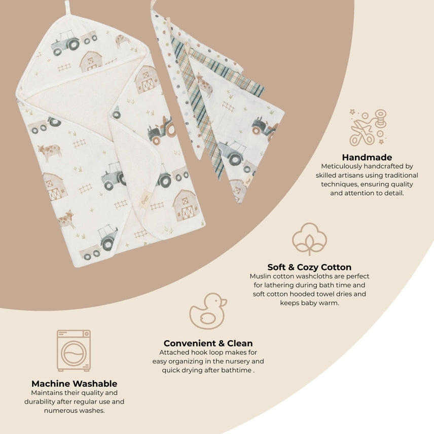 Charlie Farmhouse Tractor Hooded Towel/Wash Cloth