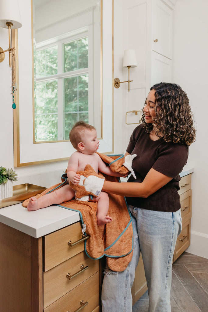 Meet Juno, Pebbles, Wally & Nori, our favorite bath time buddies! Made from ultra-soft viscose from bamboo, this wash mitt features one of our four bath time buddies with embroidered details. With loops to hang dry, the mitts are available in one size to fit most hands.