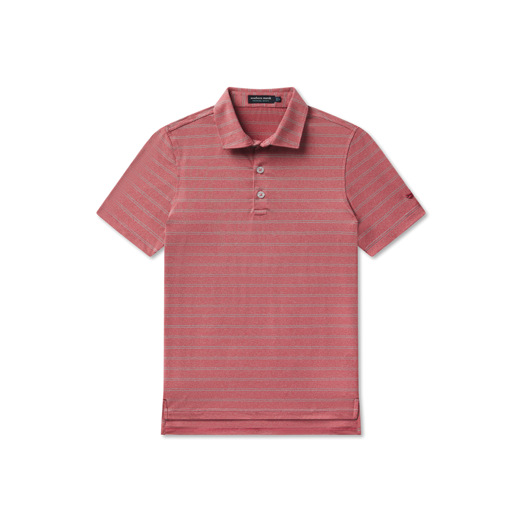 With it's classic style and versatile stripes, the Youth Newcastle Stripe Featherlight Polo is crafted from a lightweight fabric that is designed for all day comfort. Our featherlight polos are wrinkle resistant and feature a 3 button placket and duck embroidery on the sleeve..