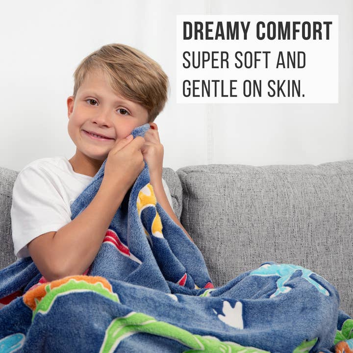 Fun Glow in the Dark Design – Watch your child's face light up with joy as the dinosaurs on this blanket glow in the dark! Perfect for creating a magical bedtime experience or a cozy movie night.