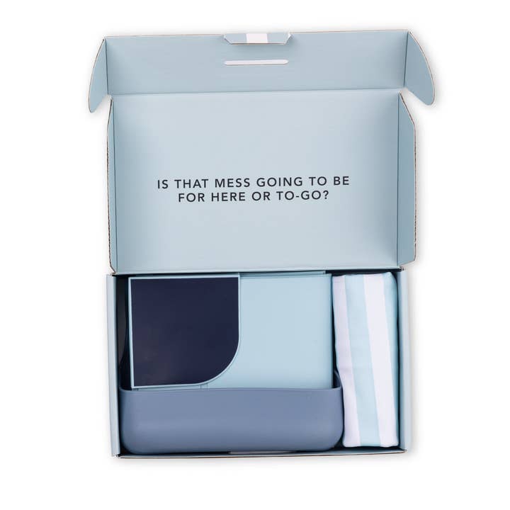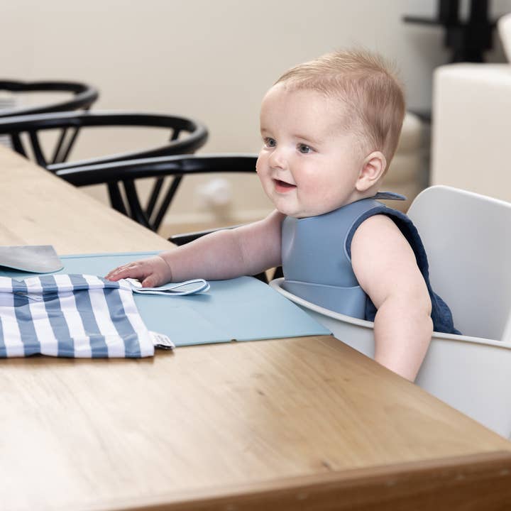 Our expert-approved toolkit of mealtime essentials to take on-the-go! This set is the perfect new baby gift and a parent must-have. Just pack up the bib and placemat in the on-the-go bag, throw in some snacks and meals can happen anywhere.
