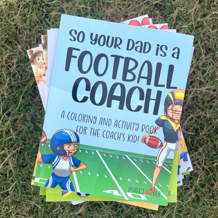 Grab this fun coloring book so your coach’s kid can share their dad's passion for coaching football! It provides a glimpse into the life of a football coaching family, highlighting these fun times through coloring pages that your kids will love. This cute activity can help get them excited for the season and keep them entertained at games, practices, or at home. We have packed it full, with over 90 pages of sports fun for the coach’s kid!