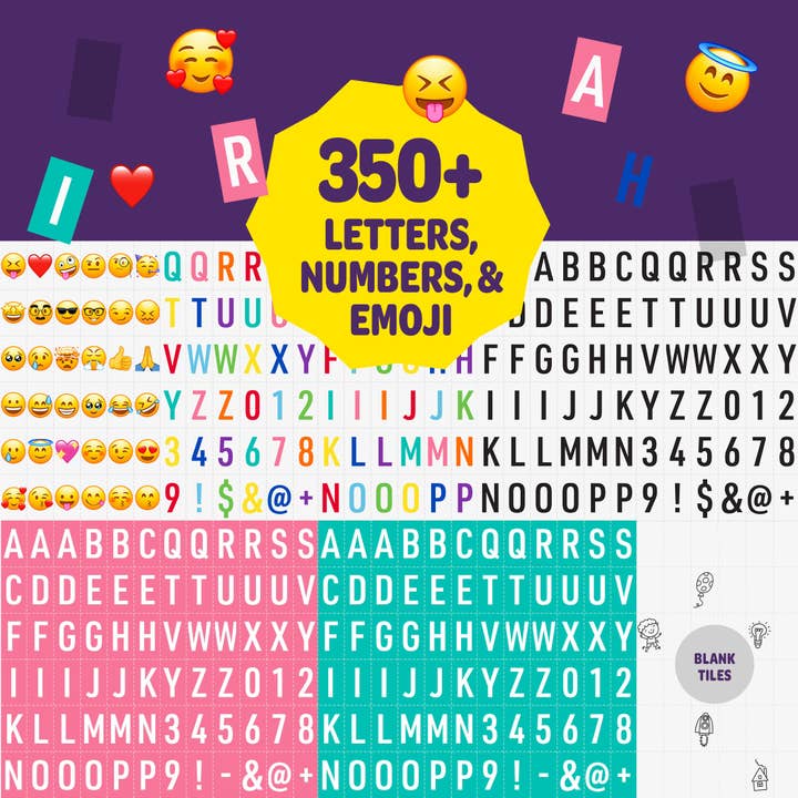 - 350+ LETTERS, EMOJI & BLANK TILES: Say anything, any way! Mix and match 350+ swappable tiles — letters, emoji, fun symbols, and sketch your own designs on blank tiles using the included dry-erase marker for endless creativity and personalization.