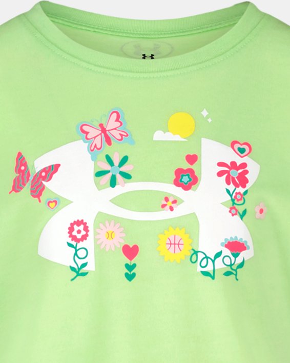 The perfect everyday T-shirt that's as ready for playground adventures as it is for family outings. This little girls' floral logo t-shirt combines the soft comfort of cotton with performance features that keep up with her active lifestyle.