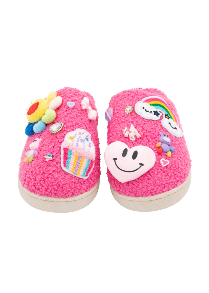 BL Charms and Patches Plush Slippers - Bright Pink