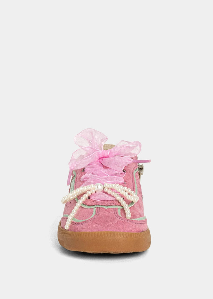 BarI Lynn RAFFIA PINK CHERRY STRIPE SLIDES