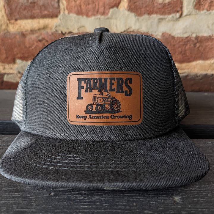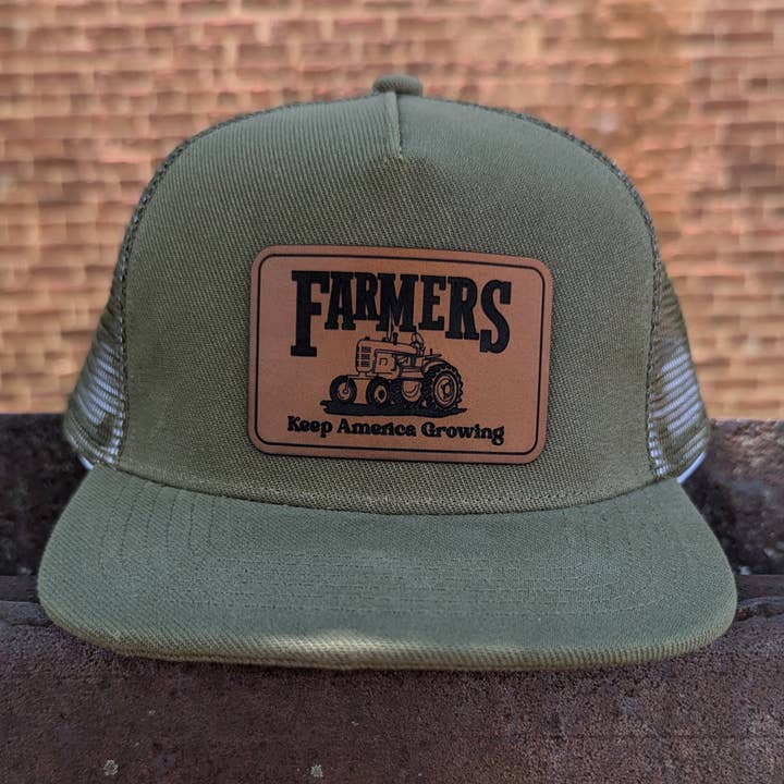 "Farmers keep America growing", mesh adjustable snapback hat Does your kid love tractors? In pairing original artwork with a leather patch and high quality craftsmanship, the hat is perfect for all your days on the farm!