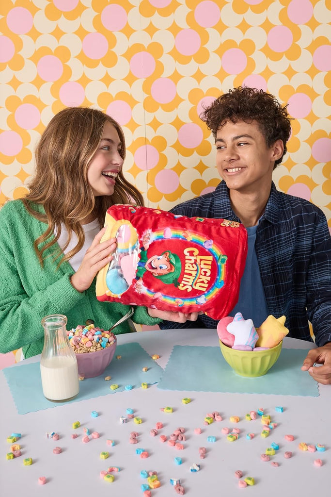There's always room for one more fun, bright, cool, crazy throw pillow - especially when it's as fun as this big 'box' of Lucky Charms marshmallow cereal buddies