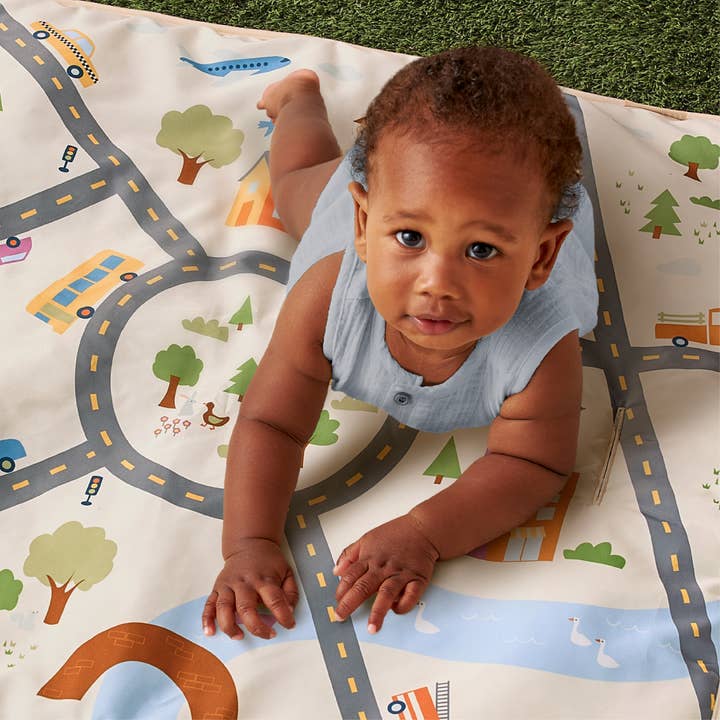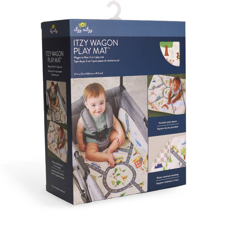 Buckle Up For On-the-Go Comfort! Ready for a road trip? The Itzy Wagon Play Mat doubles as a cozy wagon liner and a portable play space. With fold-up sides that fit most wagons, this machine washable must-have allows you to buckle in baby for on-the-go adventures. Featuring a water-resistant backing, this cushy play pad rolls up so it is easy to take on all your adventures. Bring style, comfort, and convenience wherever your little one lands.