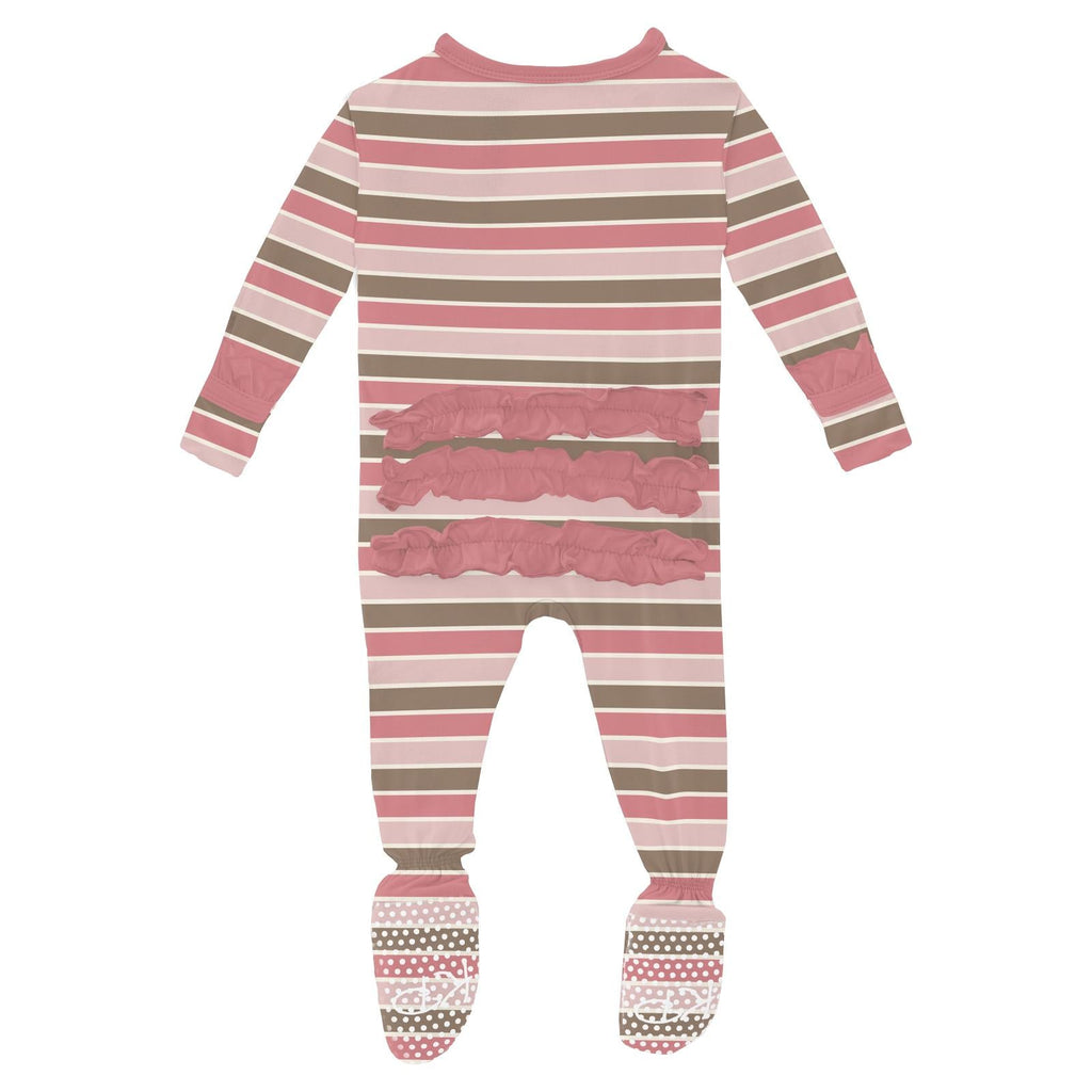 Ruffle Footie w/2 Way Zipper-Neapolitan Stripe