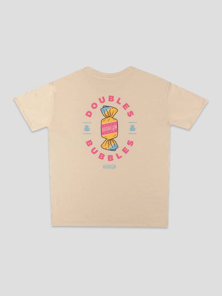 Blowin' bubbles. Hittin' Doubles. Diamond Fabric Standard Youth Tee - Features: * Regular fit: Size up for a relaxed fit * 185gsm medium weight fabric: Strikes the perfect balance between comfort and durability. * Custom Baseballism artwork: Unique, exclusive designs that showcase your love for the game. * 50/50 poly-cotton blend: Combines softness and durability with Baseballism's signature Diamond Fabric for a premium feel. * Four-way stretch: Provides enhanced mobility and comfort, ideal for everyday wear. * Care: Machine wash cold water- Tumble dry low heat