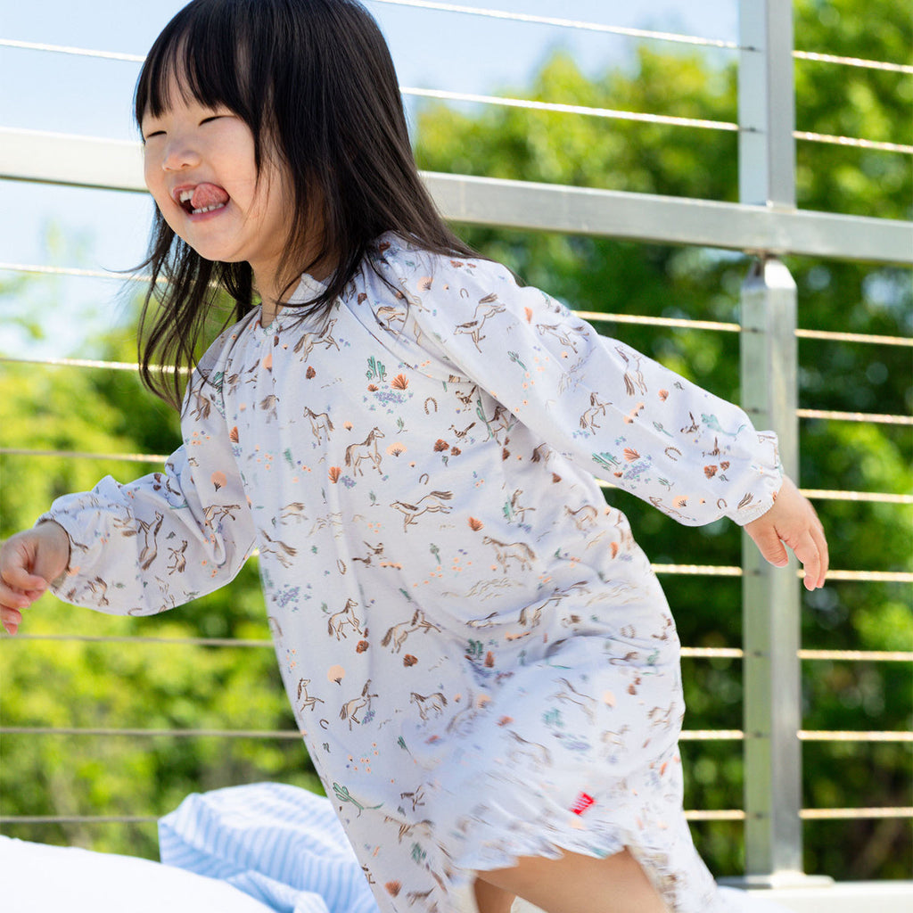 Our RightFit™ long sleeve Nightgown features magnetic closures at the neck, allowing the gown to slip easily over the head—which also helps your kids develop a can-do attitude toward dressing themselves. Crafted in our revolutionary, naturally flame resistant fabric without the use of toxic chemicals, RightFit™ is breathable and oh-so soft.