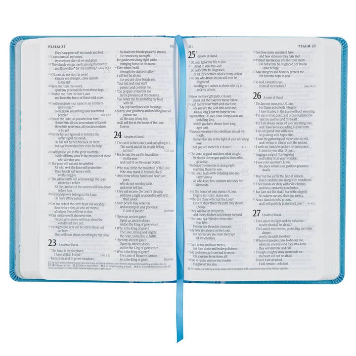 Celebrate the miracle of your baby's arrival with the Blue Faux Leather NLT Keepsake Bible for Boys. This cherished keepsake Bible will be a lasting tribute to the extraordinary journey of welcoming a new life into the world. Heat-debossed and screen-printed elephant design, Heat-debossed and screen-printed title and version reference, Flexcover, New Living Translation, Satin ribbon marker, Text printed in black, 9.11-point font, 1064 pages, Presentation page, 32 full-color pages with hymns, prayers, and Bible memory verses, Pages for family tree, birth, baptism, or christening details, Prayer or mom and dad, Double-column format, Lay-flat Smyth-sewn binding, Packaged in a full-color printed gift box, Size: 8.8" x 5.6" x 1.2" (224 x 142 x 30mm)