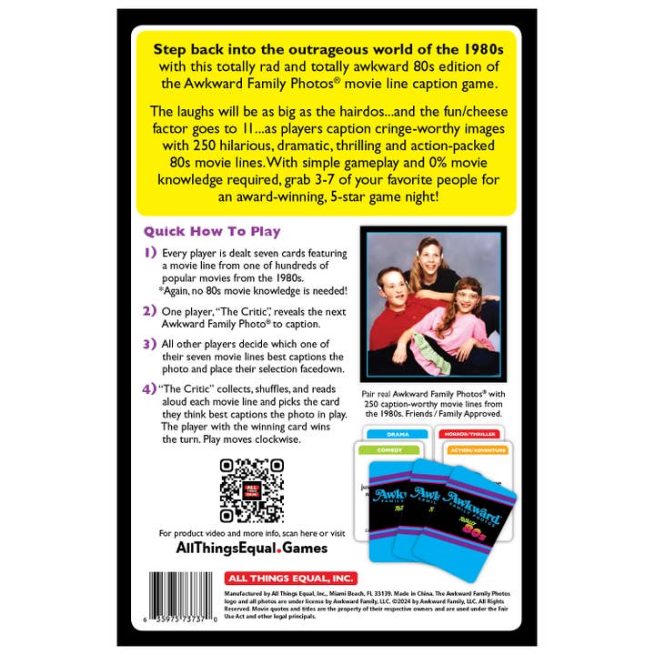 Step back into the outrageous world of the 1980s with this totally rad and totally awkward 80s edition of our popular Awkward Family Photos® movie line caption game.