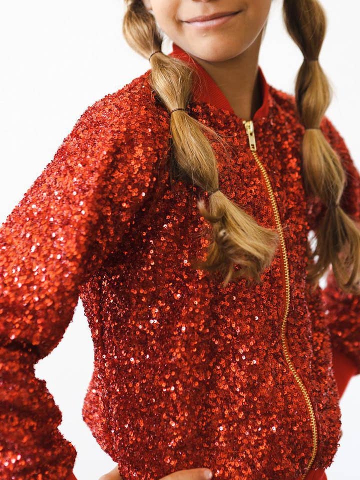 A dazzling piece that will make your little one shine like a star! Perfect for both special occasions and everyday wear. Whether she is twirling, posing for photos, or simply embracing her inner fashionista, this sequin jacket is sure to make a statement. Let her sparkle and shine with confidence and style!