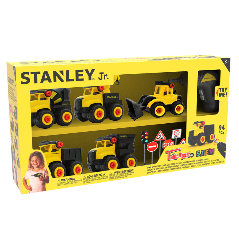 Youth builders can take things apart and put them back together with the Stanley Jr. Take Apart Dot 5 Piece Kit with Battery Screwdriver! This STEM-style set includes five buildable parts, road signage, and a power screwdriver, all sized for small hands. It’s a fun way for kids (ages 3+) to learn how things work through hands-on play.