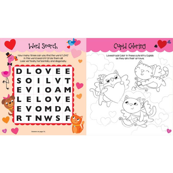 Fall head over heels for this puffy sticker activity book loaded with adorable activities and more than 85 sweet puffy stickers! Get ready for lovable fun in this colorful activity book! Turn the pages and fall in love with coloring pages, mazes, doodles, and search and finds, all decorated with hearts, flowers, and more. With adorable illustrations and more than 85 puffy stickers to add to the pages, this book is perfect for Valentine’s Day!