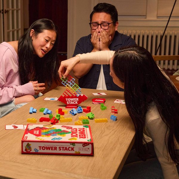 Ready. Set. Stack! Tower Stack is a head to head stacking challenge face-off! Take turns adding bricks to the rocking base — but be careful! As the stack piles up, so does the suspense! If the tower topples on your turn, you lose! It's easy to play, adrenaline-pumping fun!