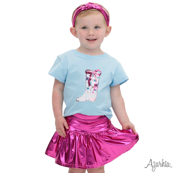 Light Blue Boxy Rodeo Sequin Bow Boot Tee