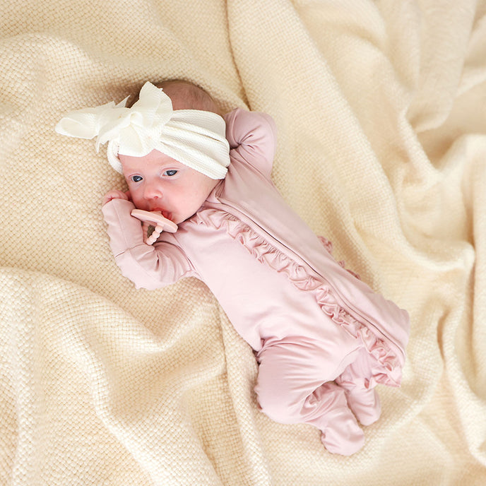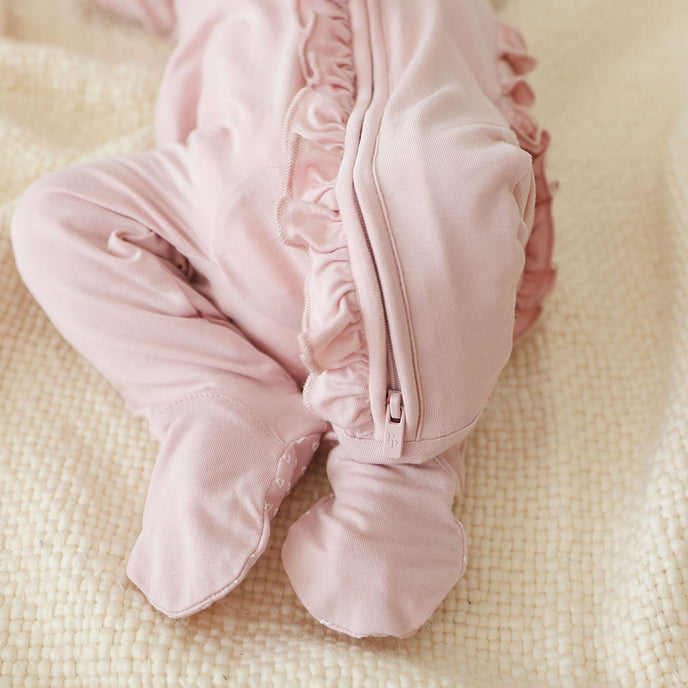 Footie Ruffled Zippered One Piece- Delaney Blush
