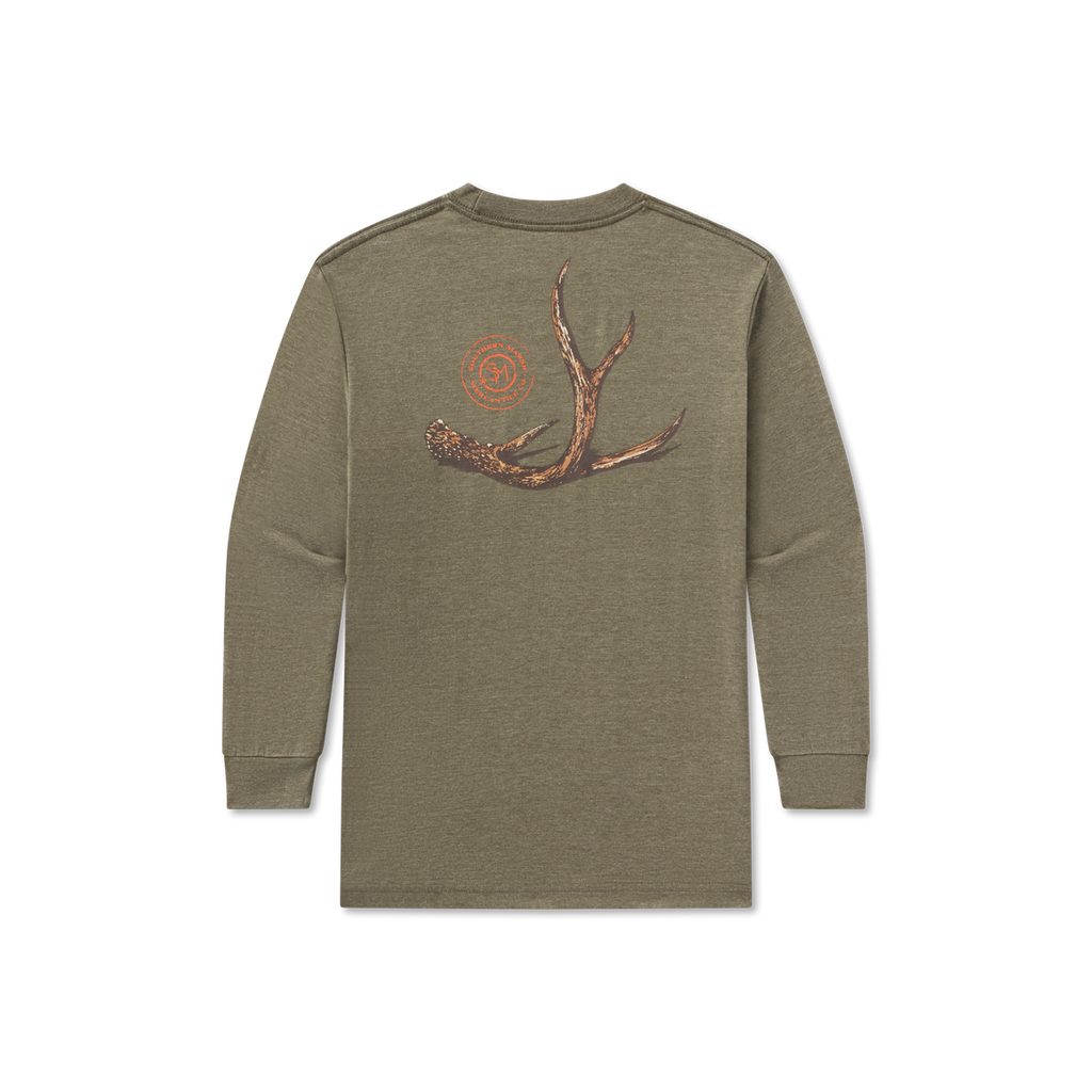 Breathable and lightweight, our Youth SEAWASH Tee - Rut long sleeve t-shirt showcases a custom detailed antler design on the back and offers a handy front pocket. Made for comfort and all day wear, this tee is perfect for layering with our fleece pullovers and canvas jackets.