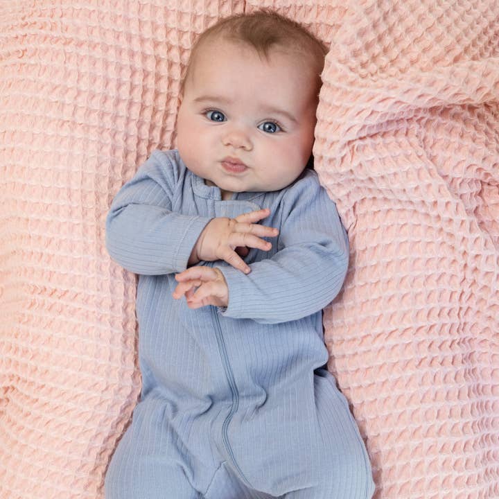 Our 40” x 40” Baby Blanket is loved for its breathable weight and touchable texture. Made of OEKO-TEX® certified and responsibly sourced cotton in a lux lofty waffle weave and offered in our signature colors.