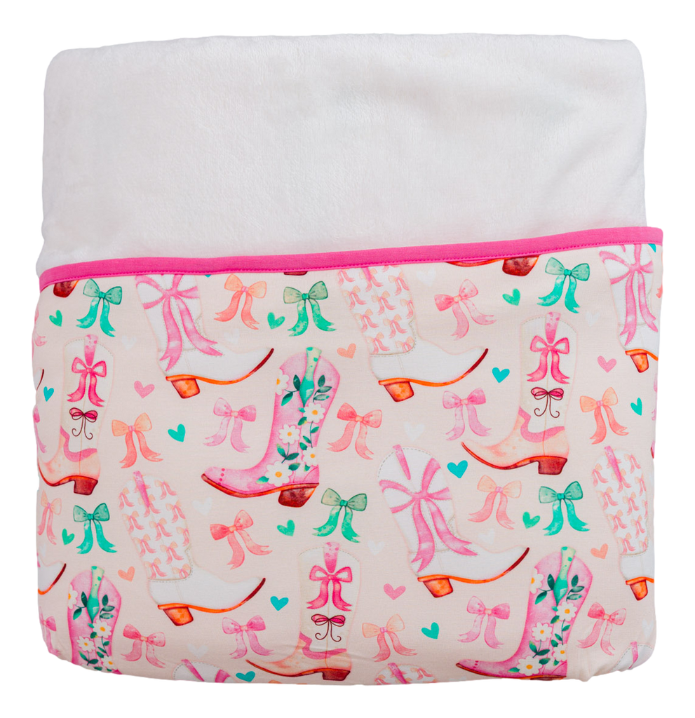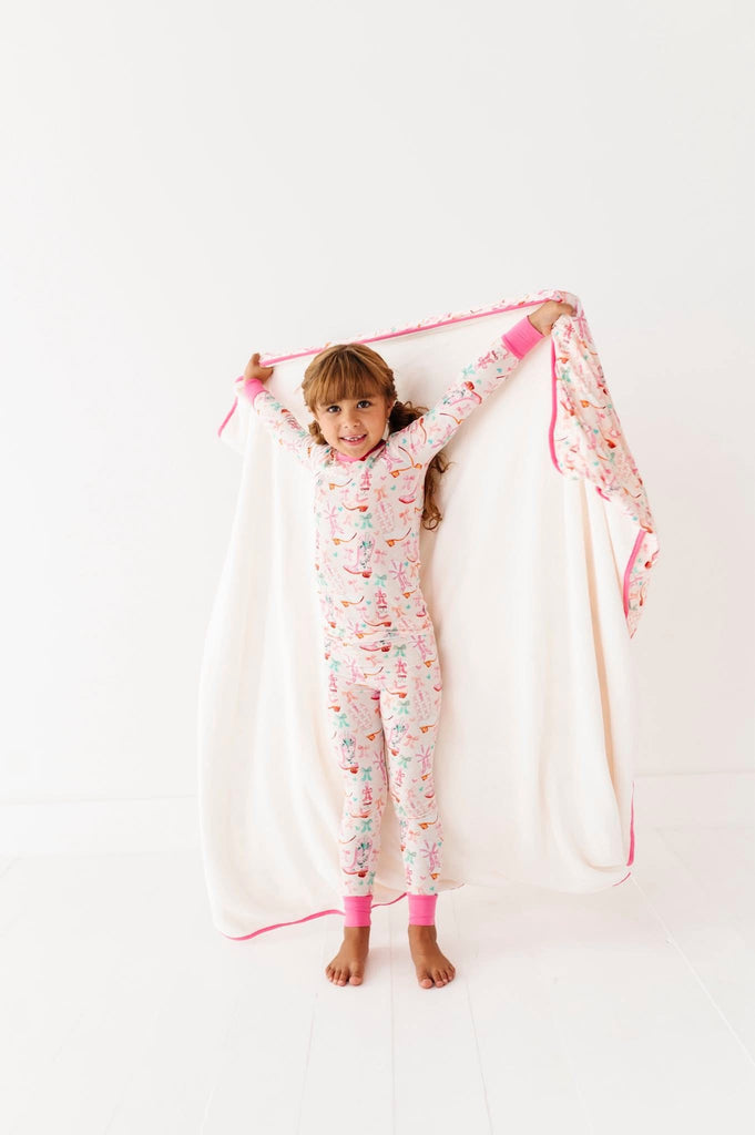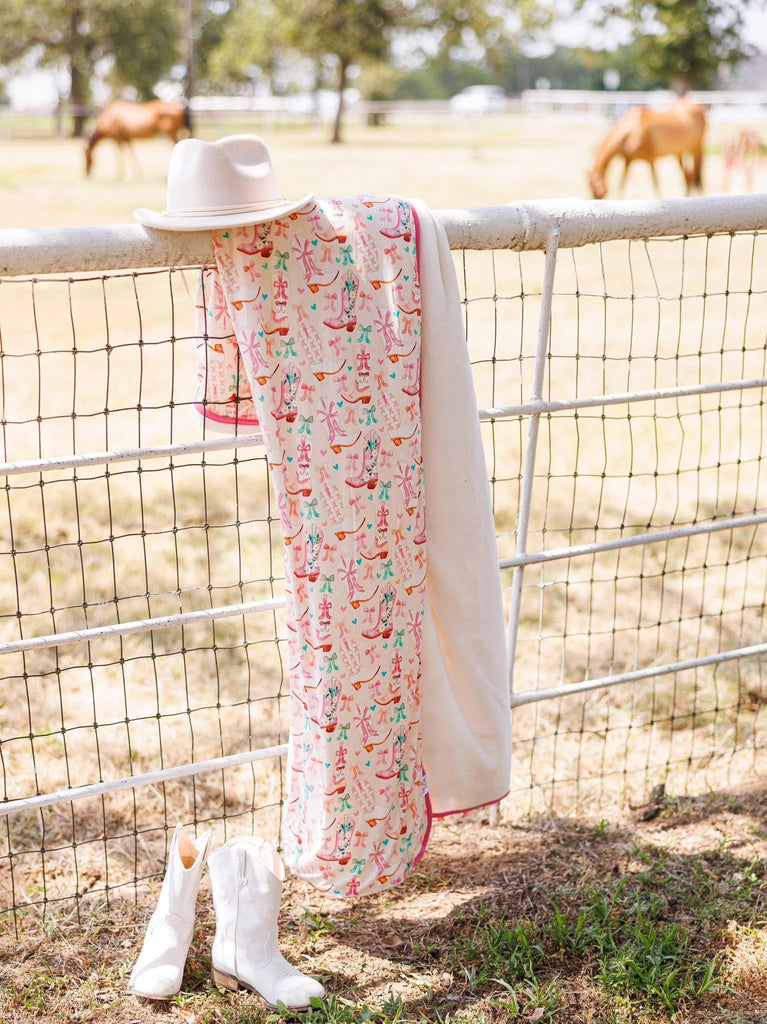 Our Dolly Plush Blanket is as soft as a tumbleweed breeze and twice as cozy. With a buttery bamboo viscose front and ultra-plush backing, it’s perfect for rodeo-day naps, bedtime cuddles, or movie nights on the ranch (or the couch 😉).