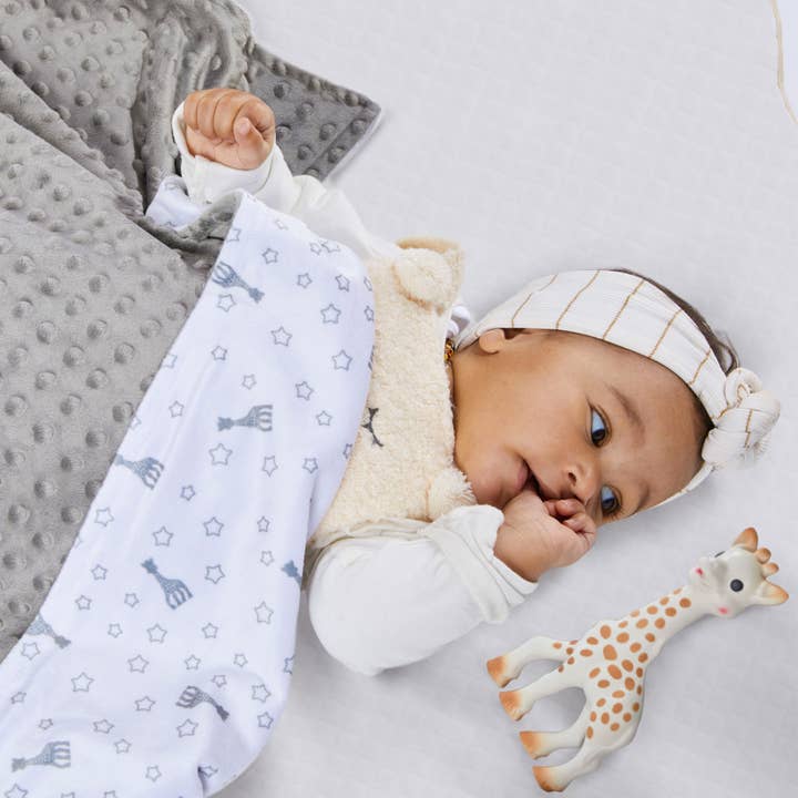 Convenient, it is washable at 30°c. Contains:. -original sophie la girafe, baby’s first toy stimulating each of his sense ; taste, sight, touch, smell and hearing. -soft blanket for baby’s comfort. Dim.: 35.8 x 28.5 inches.