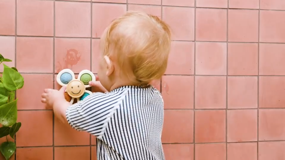 Fidget spinner with suction cup base and four silicone sensory poppers. Highchair toy format designed to entertain baby. Suction cup adheres to smooth surfaces, making for a colorful and engaging sensory toy. Helps build hand-eye coordination. Age grade 0m+Details