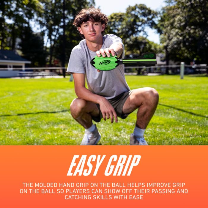 - EASY GRIP: The molded hand grip on the ball helps improve grip on the ball so players can show off their passing and catching skills with ease