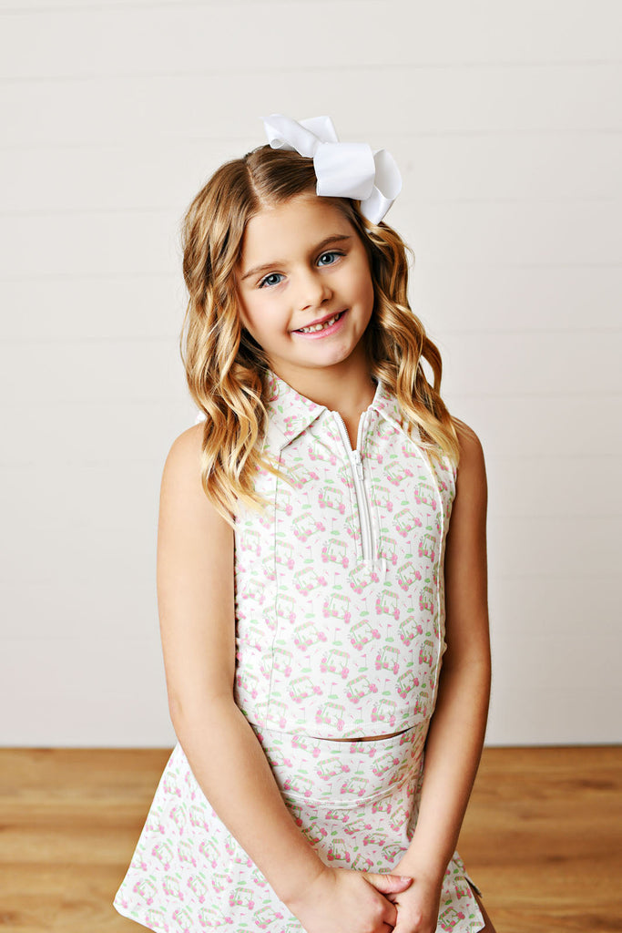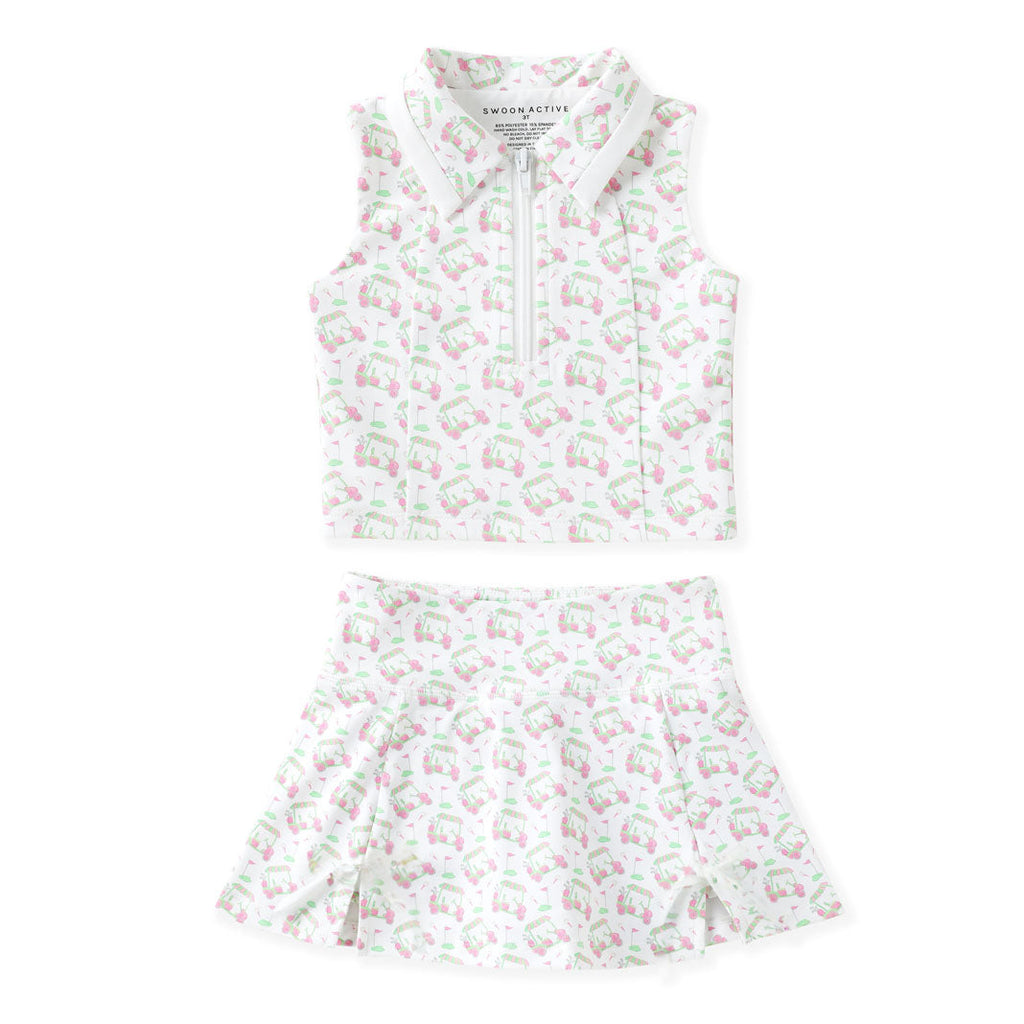 Our Swoon Active Golf Cart Print Set is the ultimate country club outfit for girls who love golf, tennis, and boutique style.