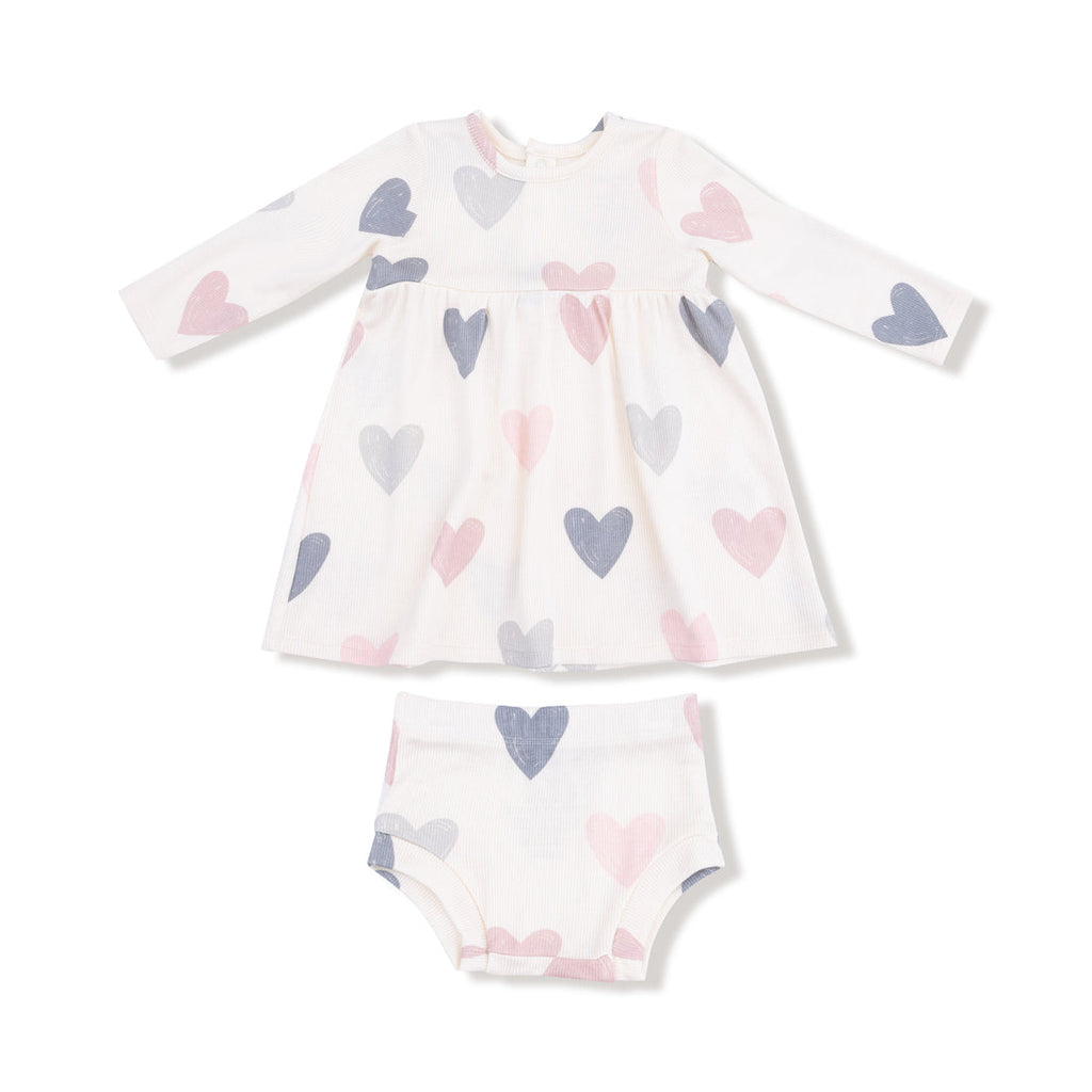 Chilly days, cozy style! Our Simple Dress + Bloomer set is an everyday essential with just the right dose of charm. The flowy dress makes twirls a breeze, while the matching bloomers keep things comfy (and diaper-friendly!) perfect for layering all season long.