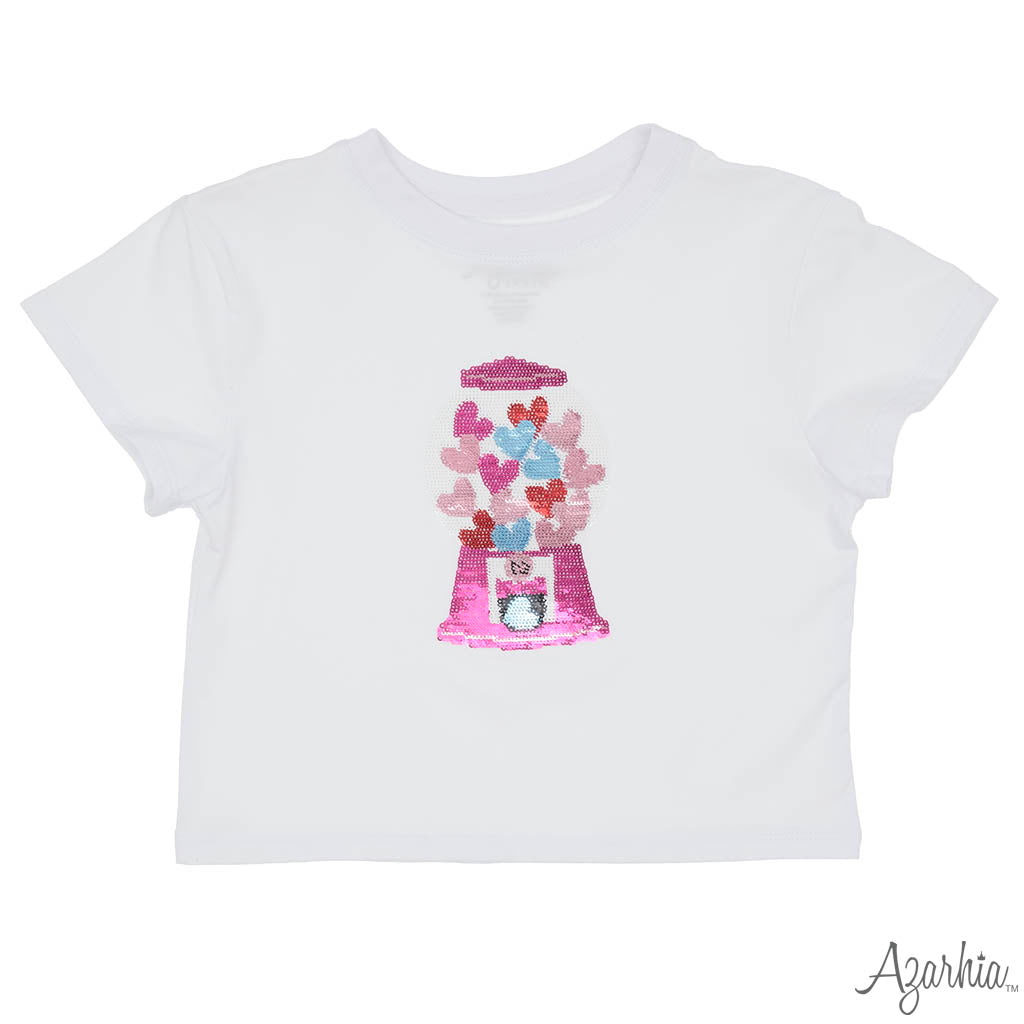 Azarhia White Sequin Gumball Hearts Boxy Tee