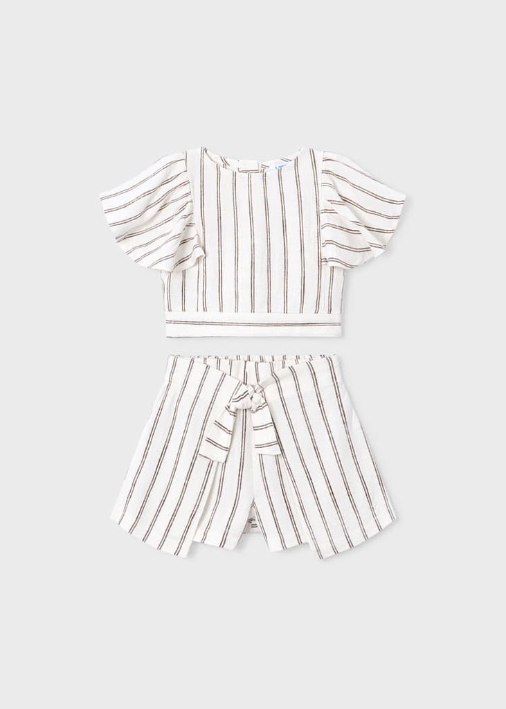 Beige Striped Skirt Set