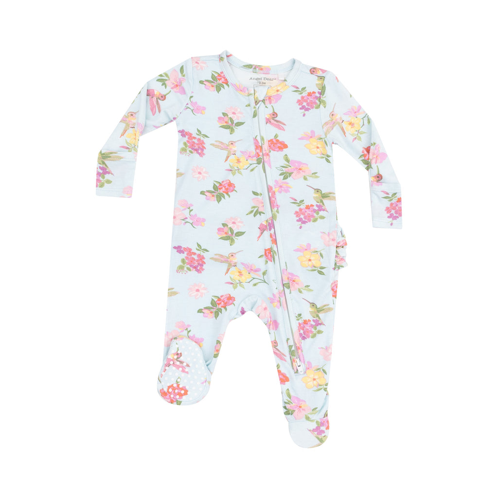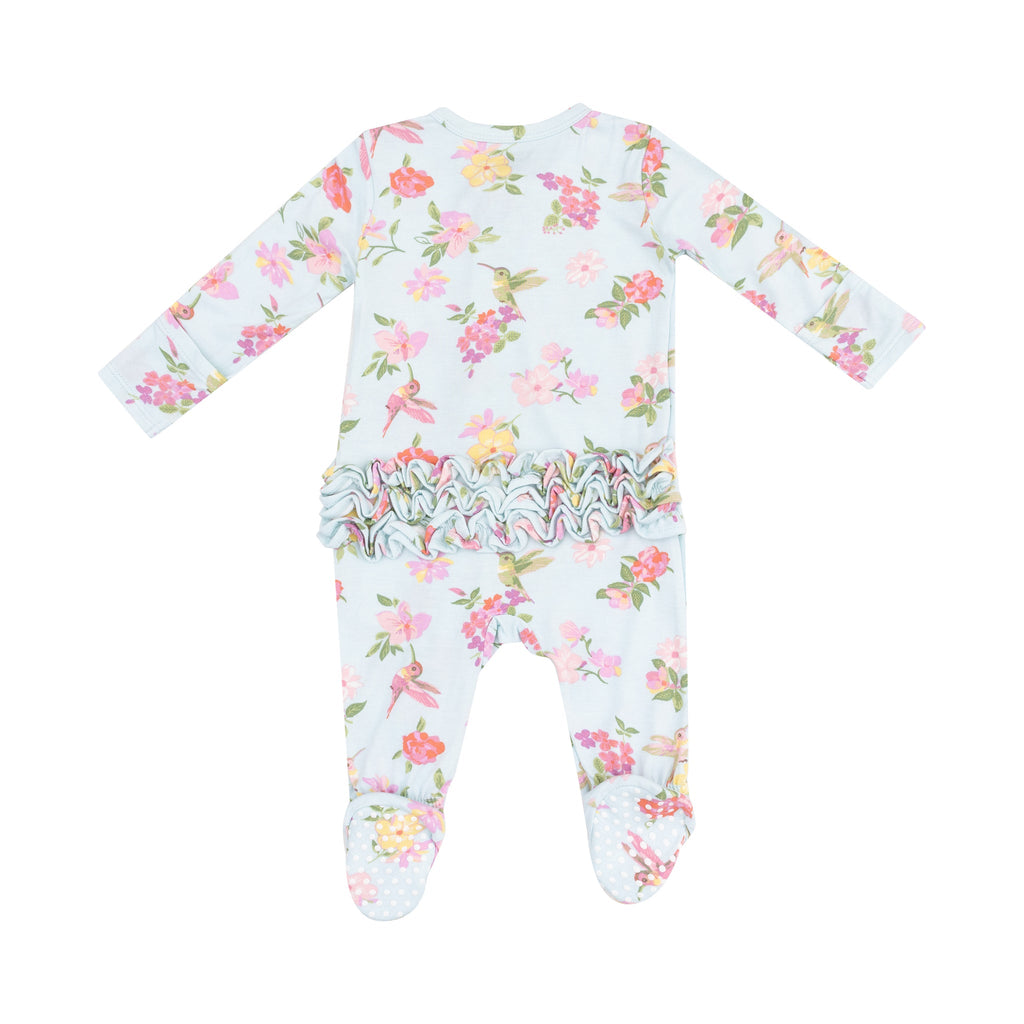 Cute Hummingbirds 2 Way Zipper Ruffle Back Footie