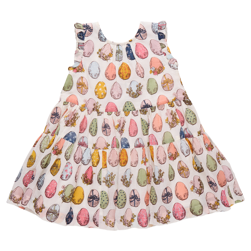 An Easter classic bursting with color! The Girls Eloise Ruffle Dress features a playful multicolor egg print in lightweight 100% cotton voile. Designed with sweet ruffle details and an easy, breezy silhouette, this springtime favorite is perfect for Easter festivities and sunny celebrations.
