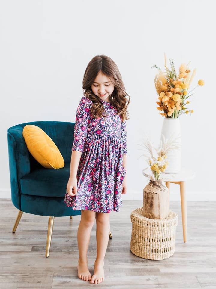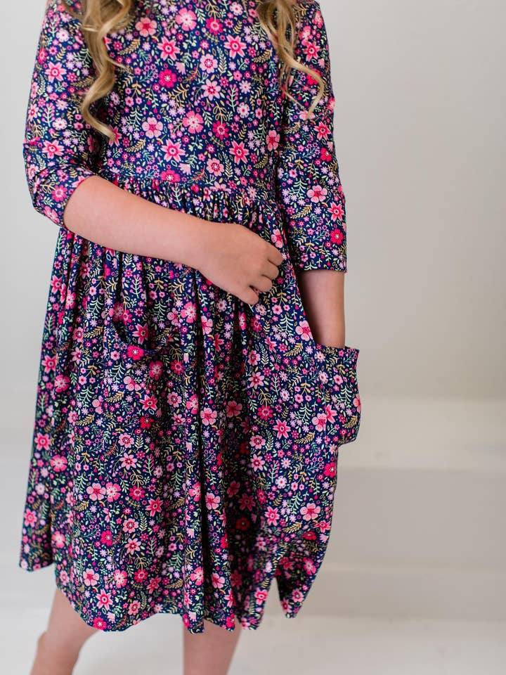 Flower Farm 3/4 Sleeve Pocket Twirl Dress