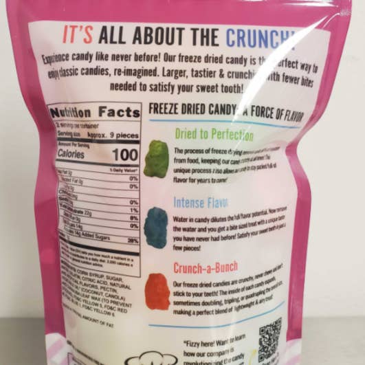 Sweets and Geeks Freeze-dried Gummi Bears are a delightful and unique twist on the classic candy that takes this school lunch treat to a whole new level. Our freeze-dried Gummi Bears offer a brand new, one-of-a-kind snacking experience, while preserving the essence of Gummy Bears and adding a unique texture and intensified flavor. Treat yourself to our 2.0oz size peg bag!!