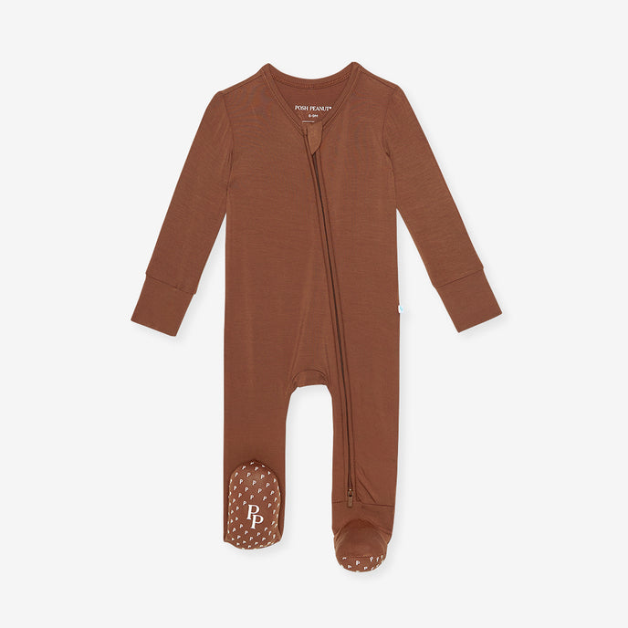 This footie zippered one piece is what PJ dreams are made of. Designed with our ultra-soft Päpook® viscose from bamboo, these jammies feature new 2-way zippers that make quick changes a breeze! Available in coveted prints and outfitted with signature Posh Peanut® footie grips, elastic backing on footies for a snug fit, and fold-over mittens in sizes NB and 0-3M, this one piece is guaranteed to be a daily go-to.