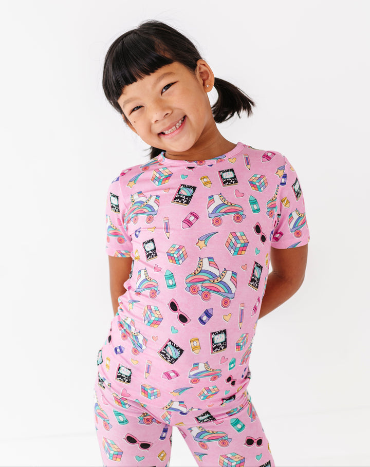 Throw it back to the raddest decade with these 90s-inspired jammies! Covered in roller skates, cassette tapes, Rubik’s cubes, and more, this ultra-soft pajama set brings all the retro vibes with the comfort your little one needs for sweet dreams. Made from our signature bamboo blend, it's breathable, stretchy, and gentle on sensitive skin—perfect for bedtime, movie nights, or lounging in style.