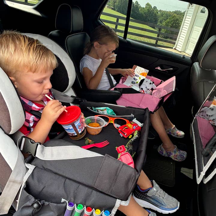Perfect for long car rides, plane trips, or stroller walks, this tray makes every adventure more fun.