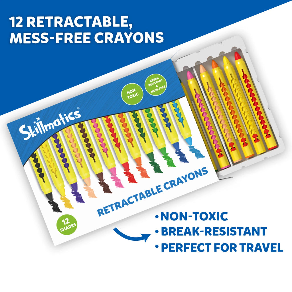 - MESS-FREE & EASY TO USE: No sharpening, peeling, or broken tips! These retractable crayons stay clean and ready to go, just push to color. Perfect for mess-free fun anytime, anywhere.